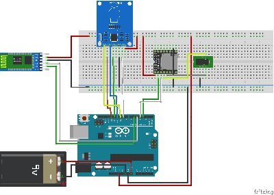 Bluetooth HC-06 modul postiže serijski bežični prijenos podataka radne frekvencije od 2.4 GHz ISM koja se svrstava u najpopularniji frekvencijski pojas (tj. industrijski, znanstveni i medicinski pojas). Funkcija ovog modula je poslati serijskim bežičnim prijenosom podatke koje se pročitaju s RFID čitača na Arduino Duemilanove.